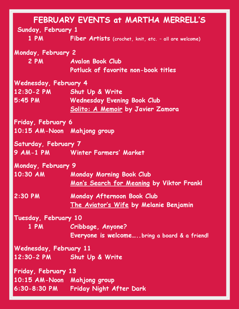 Home Page Martha Merrell’s Books, Toys & Gifts is now listed on TravelWisconsin.com as a great place to shop view our listing here: https://www.travelwisconsin.com/shopping/martha-merrells-books,-toys-gifts-279112. WHAT’S GOING ON THIS MONTH! LIVE MUSIC FRIDAY NIGHT AFTER DARK at Martha Merrell’s!